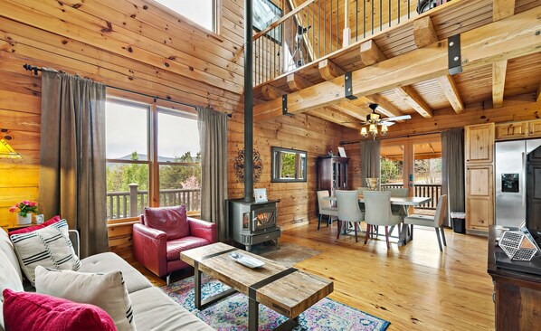 Above It All è la casa vacanza perfetta per ogni stagione! Goditi il bel tempo innevato in inverno, dove una cabina accogliente è perfetta. Resta caldo davanti al camino o rilassati nella vasca idromassaggio nel bagno padronale. Visita in estate quando il tempo è sempre perfetto e puoi goderti le rilassanti brezze estive e gli splendidi tramonti dalla veranda panoramica si affacciano. Indipendentemente dalla stagione, questa casa di montagna e la bellissima zona ti offriranno un weekend o una vacanza che tu e i tuoi cari non dimenticherete mai!
