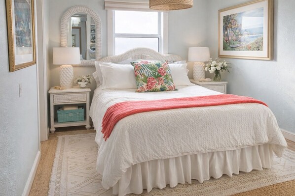 We really enjoyed the gardens and how easy & enjoyable it was to walk to shops and restaurants in the area. Host went above and beyond with amenities and much appreciated personal touches. Would’ve enjoyed a hot tub but we had fun at the beach and had more than enough provided beach gear. Wish we could have stayed a few more days!