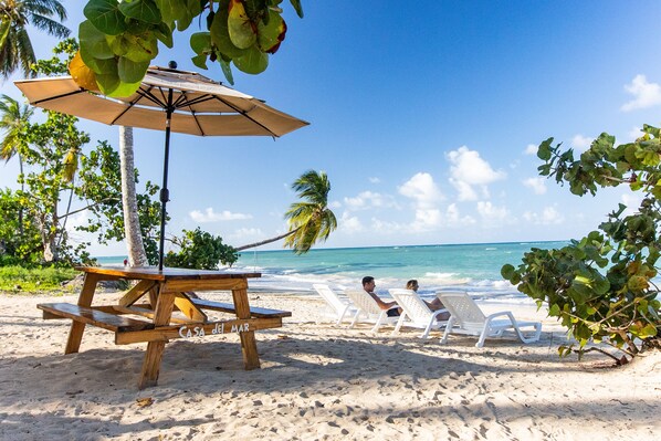 Soak in the sunshine & warm Caribbean breezes from this open-air, authentic Dominican home. Perfect for family vacations & weekend getaways. Enjoy your morning coffee on the expansive front porch, surrounded by lush tropical landscape, or take a short walk to the white sand beach & rolling turquoise waters. Spend the morning on the sand & lunch will be waiting for you when you return. Authentic Dominican meals prepared for you by our staff plus cleaning & laundry service means a true getaway.