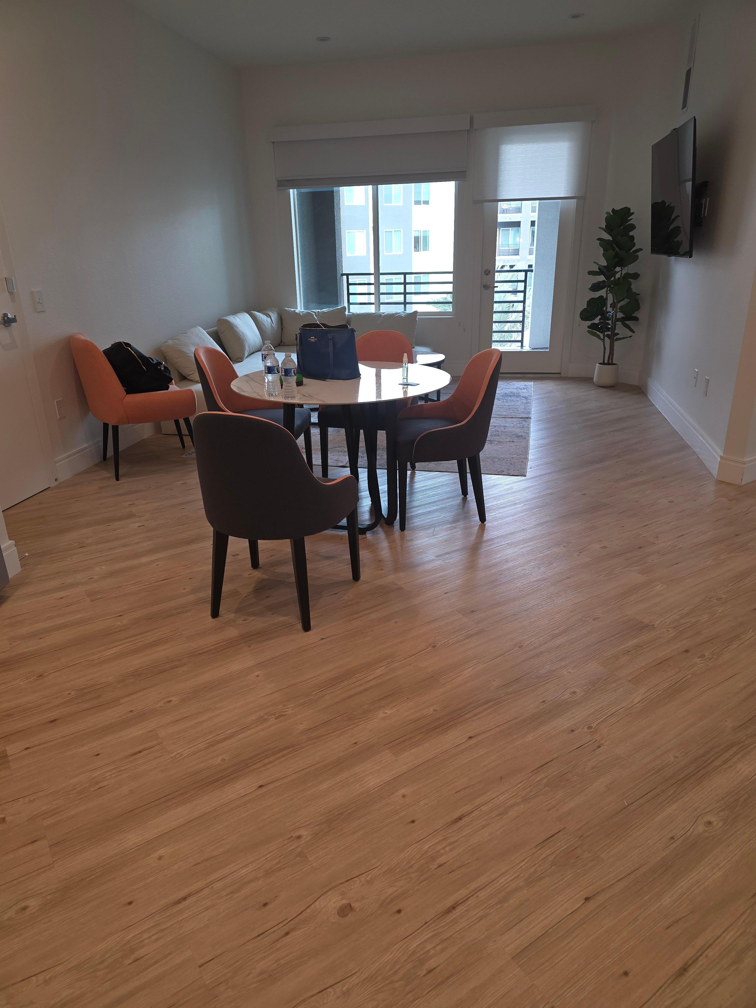 When we finally got checked into our room through an app, there was crumbs under the kitchen table and a huge hair on the couch. Overall the room did not seem super clean. We were staring with our young kids so through the paper thin walls, night time was extremely loud and we had trouble sleeping. If you are trying to save money by staying off the strip, just know that you will make up the difference if you take an Uber to the strip or have to park on the strip. There is no transportation from the hotel.