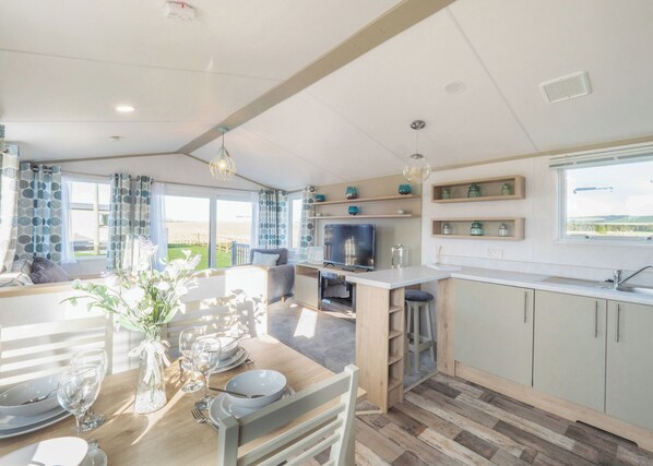 Stylish and comfortable holiday home featuring your own private hot tub. Outside, along with the hot tub, is a decked area with garden furniture. With open plan/lounge area and fully equipped kitchen with a modern finish. With one double with en suite with toilet and sink and one twin. There is also additional sleeping for two in the lounge area. There is also a shower room. Maximum 4 adults and 2 children. No pets.. Set in the picturesque countryside, the Royal Arch Holiday Park in Aberdeenshire has stunning collection of holiday homes and lodges with your very own outdoor hot tub.