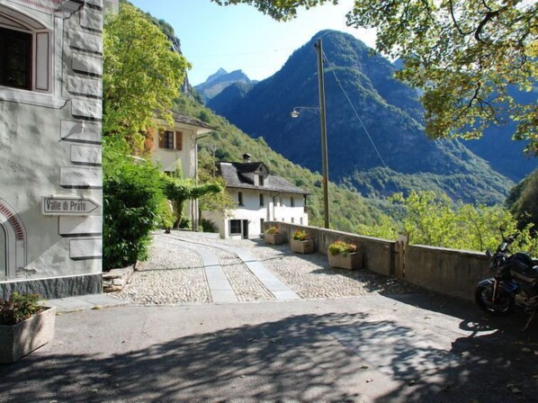 Prato Sornico 37 km da Locarno: Un soggiorno nella Casa Signorile a Prato-Sornico (758 m s.l.m.) è sinonimo di pace, relax e autenticità vissuta, situata nell'originario paesaggio montano del comune di Lavizzara con i suoi antichi paesini di montagna, tra cui il paese di Prato a la sua struttura originaria e i tetti ricoperti da pesanti lastre di granito. Era ancora abitato nell'Ottocento dai discendenti della famiglia Medici di Firenze. Casa "Casa Signorile", 758 m s.l.m., grande, rustica su 4 piani. Nella località Prato Sornico, posizione tranquilla, soleggiata, immerso nel verde, esposizione sud-ovest. Per uso privato: terreno allo stato naturale, prato. Patio. Accesso stretta fino alla casa. Parcheggio pubblico 100 m sulla strada. Negozio alimentare 550 m, fermata bus "Postauto Linie 334" 150 m, stazione ferroviaria "SBB-CFF Locarno" 37 km, laghetto naturale balneabile 900 m. Sentieri per passeggiate vicino alla casa 10 m. Attrazioni nelle vicinanze: Chiesa di Mogno, Stausee Sambuco, Fusio 12 km, Locarno, Ascona, Ronco sopra Ascona, Isole di Brissago. Sentieri escursionistici: Vallemaggia, Valle Bavona, Bosco Gurin, Centovalli, Valle Verzasca. Prego notare: no ascensore. Dotazioni per bimbi su richiesta (extra). È permesso il carico e scarico bagagli presso la casa. Animali nei dintorni.