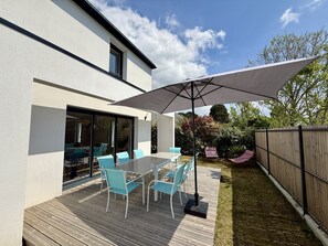 Here, with family or friends, you can fully enjoy your holiday. Its outdoor space is conducive to gatherings: savoring a delicious breakfast, playing with children and sharing moments of conviviality around the barbecue. Moreover, the house is located just a few metres from the beach, thus offering you the opportunity to swim in the salty water.