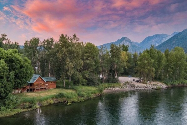 The house was just as described, clean, and well stocked with towels, bathroom and kitchen items. Important details were carefully thought of, like extra blankets, a fan, overhead lighting in the kitchen work area, and soft corners on the coffee table. The location is excellent, in terms of being close enough to the water that you can walk right in to the river, and having a great view of trees and nature. Guests should be aware that it is right next to the public boat launch and people will be floating by on inner tubes all day, so you are in full view. Rarely, a lost inner-tuber will pull up on your lawn. Also, it might look like it's close enough for a pleasant walk to town, but there is no sidewalk and the cars are very close. We did have a little bit of a problem with family members who found sleeping on the bunk beds difficult because they were very creaky and woke them up, and we lacked screens on some of the windows in bedrooms where there were no AC units so we couldn't get cool air at night. We asked the management company for help and they came by and helped us with the screens. Overall, it is a beautiful property, and it is very peaceful to sit on the porch facing the water in the early morning and see the wildlife (we saw deer, bald eagles, osprey and racoons) and the location is very convenient for driving into town and to the nearby Safeway grocery store and health food store.