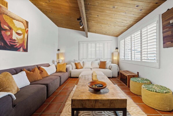 Our cozy 2 bedroom/2 bathroom Spanish style sanctuary boasts an expansive patio. The back deck offers sweeping views of the captivating landscape of San Diego and Mexico. 🌵
