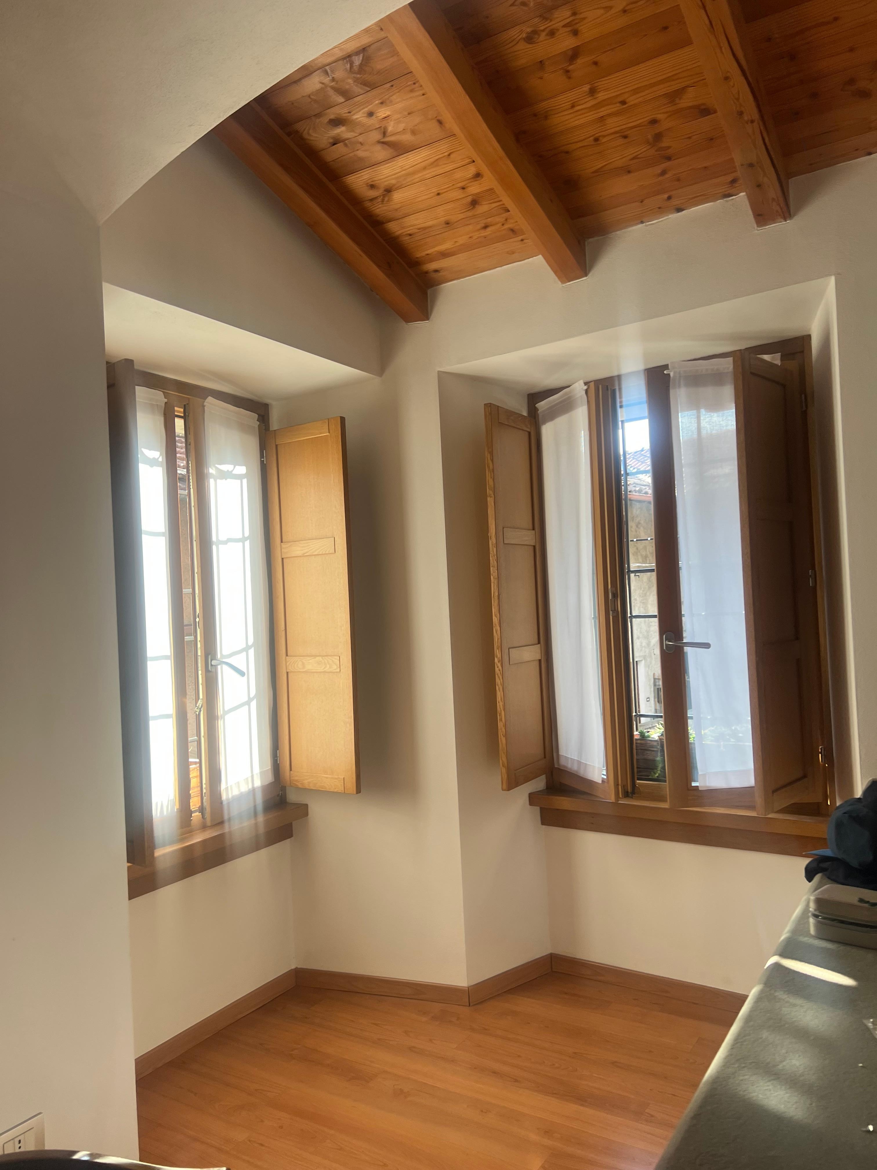Casa a schiera 3 locali 100 m2 su 3 piani, piano rialzato. Arredamento rustico e di buon gusto: soggiorno/sala da pranzo aperto con camino (solo con funzione decorativa), tavolo da pranzo. Cucina aperta (forno, lavastoviglie, fornello a gas, 4 fuochi, tostapane). Piano superiore: aperto 1 camera matrimoniale con porta scorrevole. Vasca/bidet/WC. 2. piano superiore: soppalco mansardato, aperto con 2 letti. Riscaldamento a pavimento. Piccola terrazza. Mobili da terrazza. A disposizione: seggiolone, lettino per bimbi fino 2 anni. Internet (wifi, gratis). Garage (1 Auto) a 50 m, altezza 224 cm, larghezza 220 cm. Prego notare: appartamento per non fumatori. Uno o più posti letto adibiti a zona notte si trovano in area aperta o di passaggio (come soppalco, corridoio, alcova e simili). IT097043C2UXS3ZMJ6