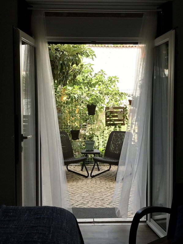 Lo studio ha anche un patio privato, arredato con sedie e tavolo, decorati con fiori e piante. Se attrezzature per bambini aggiuntivo o altro, proprio ordine.