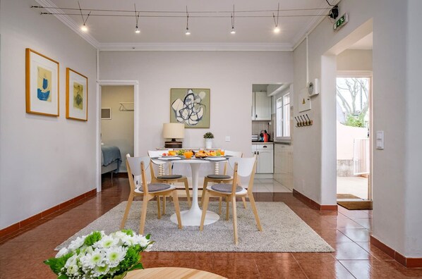 A lovely little vintage cottage built in the late 1940's and comfortably decorated for a perfect holiday. Enjoy the sunny outdoor terrace for relaxing and dining. This gorgeous little place is idyllically located in the heart of a typical Portuguese community in Cascais. The space is cosy and suited to a maximum of 4 persons sharing (preferably 2 adults and 2 children as this is not a large cottage.