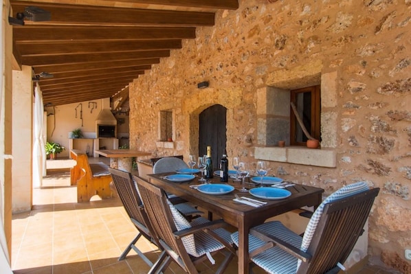 La casa vacanze vanta un'area esterna privata con piscina, un giardino, una terrazza aperta, una terrazza coperta e un barbecue.