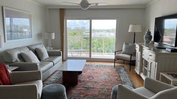 Vieni a visitare Longboat Key e goditi il nostro condominio per le vacanze. La nostra zona giorno comprende due soggiorni, uno con porte scorrevoli sull'ampio balcone con ringhiera in vetro che si affaccia sull'isola verso la baia di Sarasota.