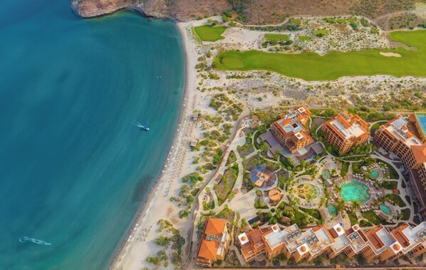 Experience ultimate relaxation in this exquisite 2-bedroom, 3-bathroom penthouse in Loreto. Nestled within a premier resort, this property offers breathtaking views of the Sea of Cortez and a world-class golf course. Unwind in the private jacuzzi on the expansive terrace while savoring panoramic sunsets. The interior features a fully equipped kitchen, elegant living spaces, and spacious bedrooms with en-suite bathrooms. Enjoy exclusive resort amenities, including a pristine beach, pools, spa, and fine dining. Perfect for golfers, nature lovers, and families seeking tranquility and adventure.