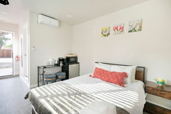 Cozy Compact Studio: Queen Bed, Fast Internet, Laundry, and a Serene Backyard