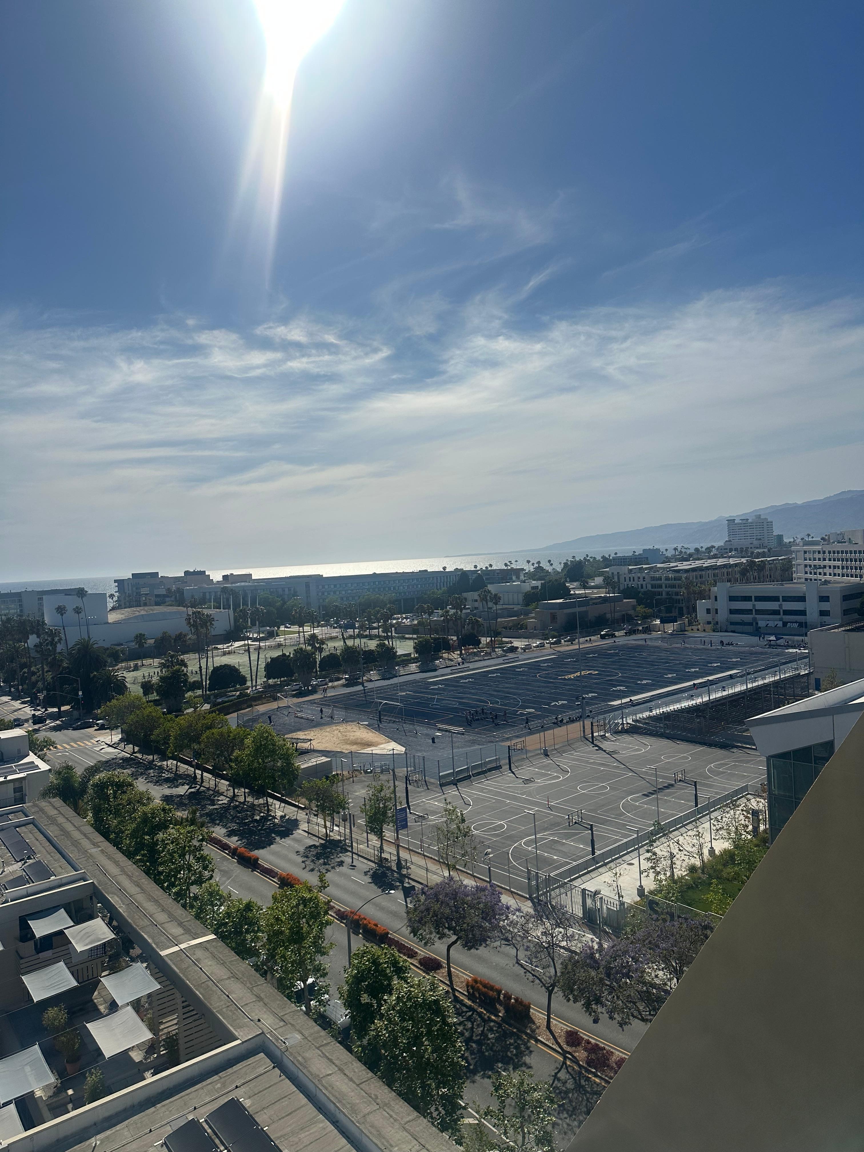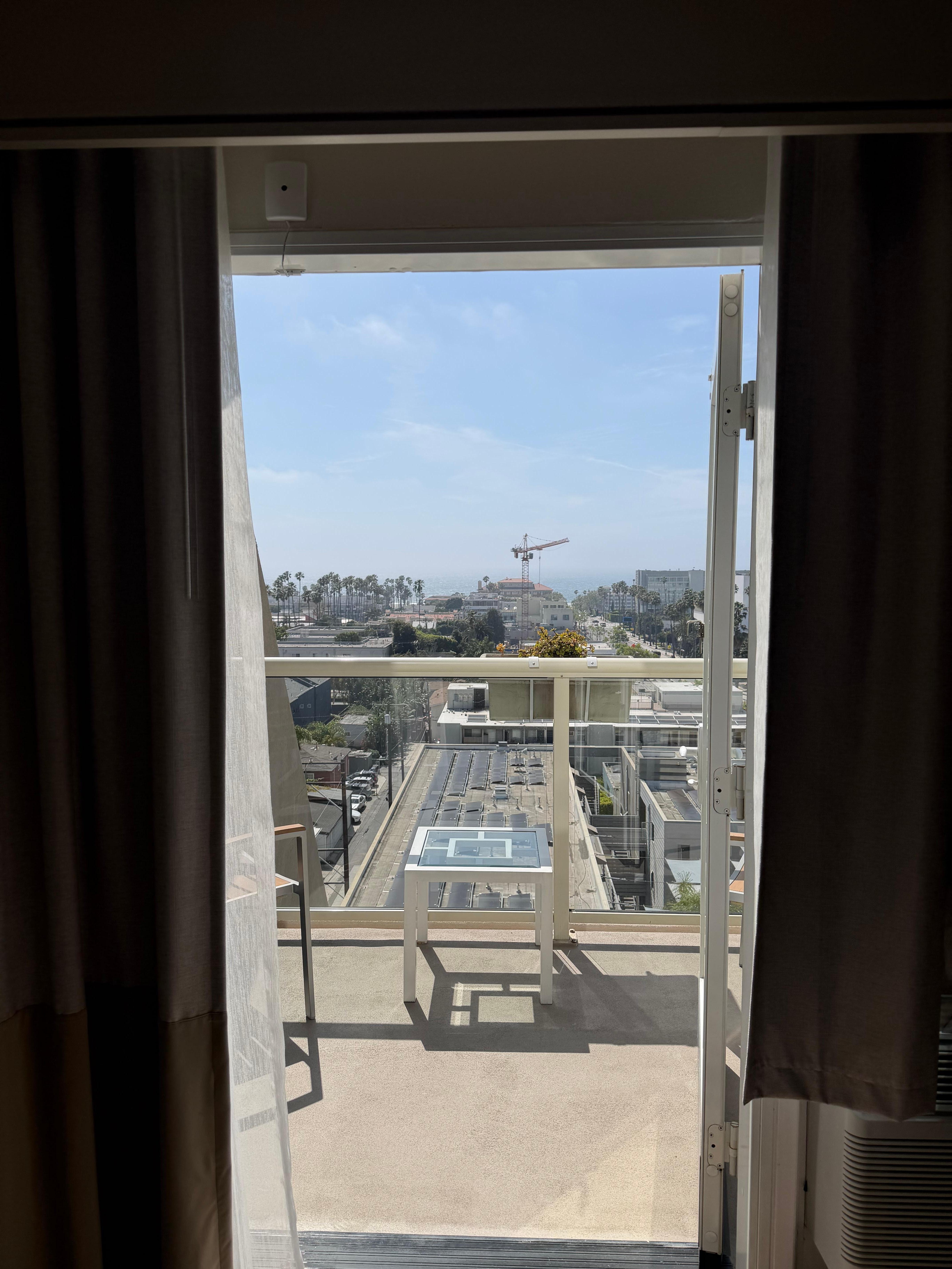 Really lovely hotel. Ocean view was nice. The hotel is about 5 streets away from the ocean, but it was visible and a nice view. If you planned to walk to the Santa Monica Pier - it about a 25 mins walk. Also, we did luck out and find street parking on a smaller side street, saving us $50 U.S!