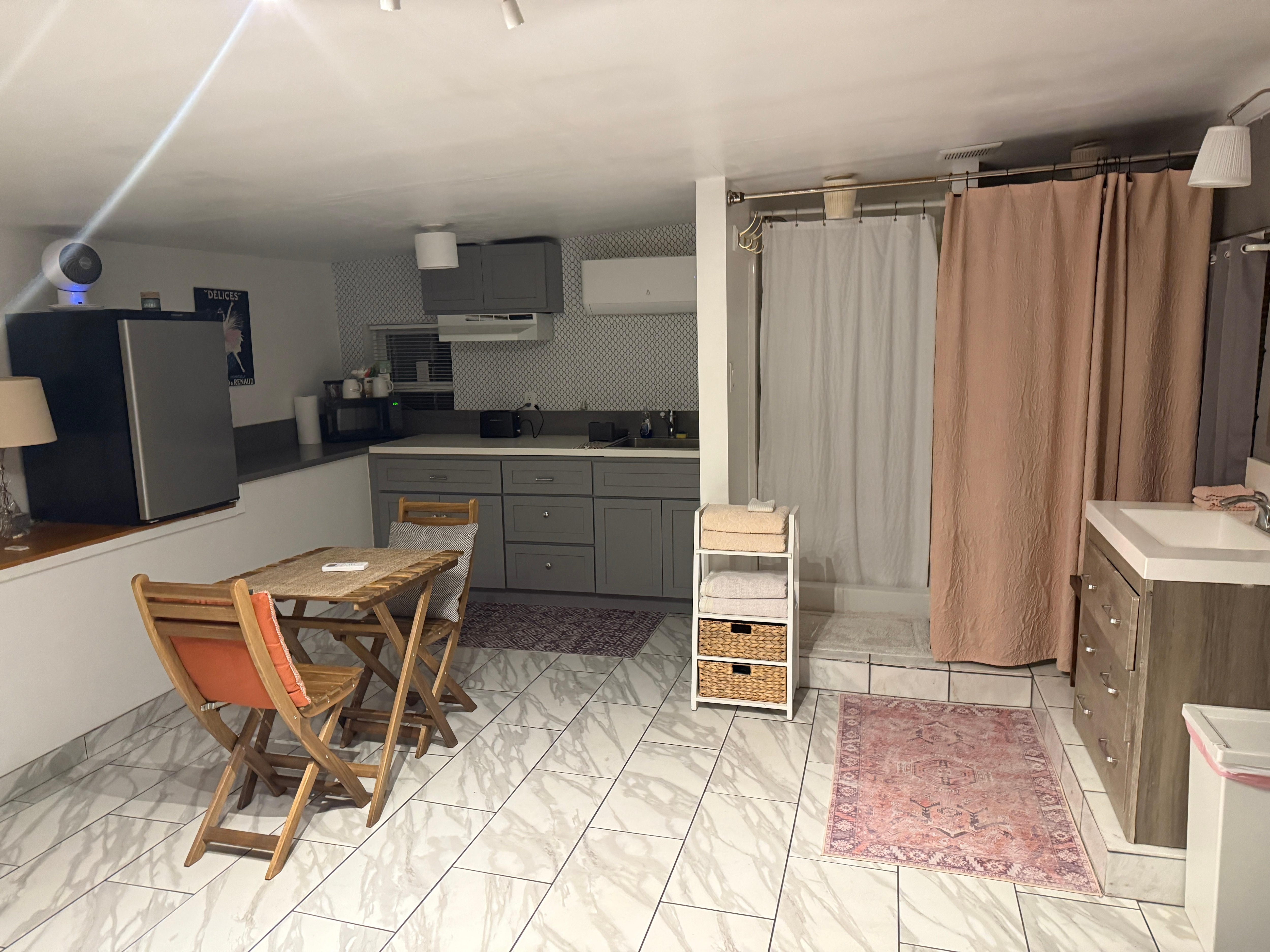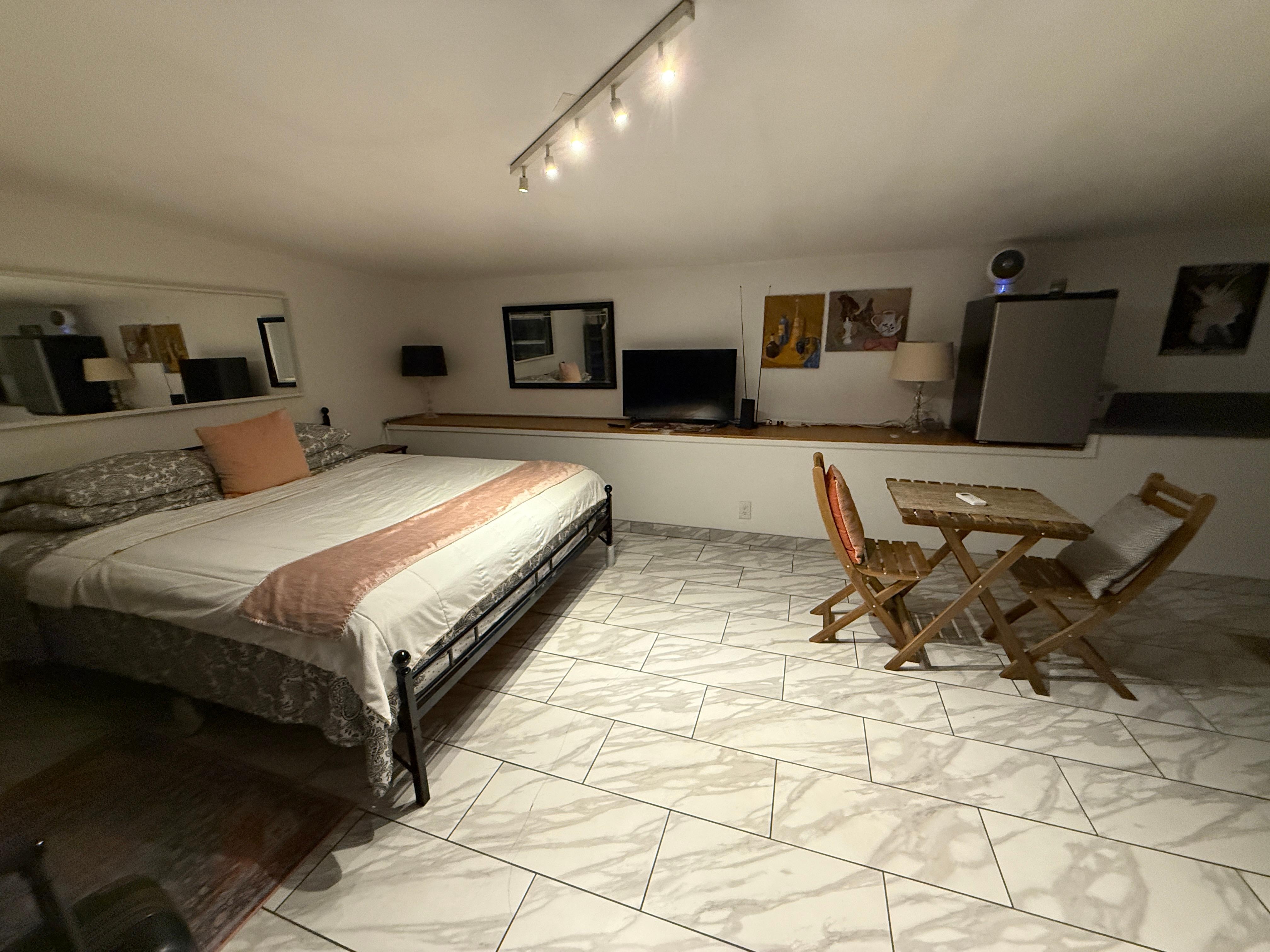 This place is perfect for a solo traveler or an intimate couple. It’s efficient, clean, and incredibly comfortable—truly has everything you need whether you’re staying awhile or just for a quick night. The shower deserves a special mention: hot water, great pressure, and very relaxing. The unit is easy to access and absolutely darling. I loved it so much I ended up extending my stay, and Juan was incredibly accommodating and helpful throughout. I’ll definitely be coming back again and again. Highly recommend—honestly, a million stars!
