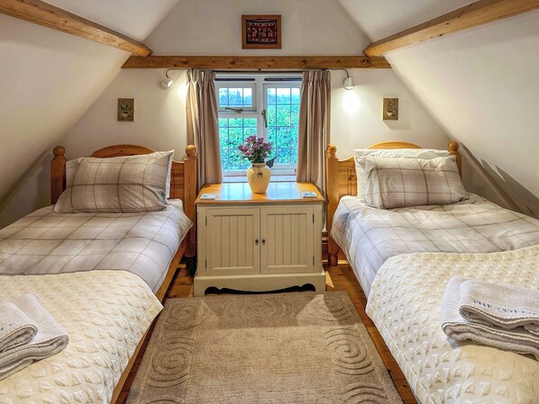 Camera 2: con due letti singoli, travi a vista e soffitto spiovente .. Riscaldamento elettrico centralizzato, elettricità, biancheria da letto, asciugamani, Wi-Fi e legna per legna inclusa. Pacchetto di benvenuto. Giardino recintato con prato verde con mobili da giardino, barbecue e chiosco. Parcheggio privato per 3 auto. Vietato fumare. Si prega di notare: ci sono 3 passi in giardino. No bambini sotto i 12 anni .. Situato nello storico villaggio di Richards Castle nella pittoresca campagna dello Shropshire, offre agli ospiti numerose opportunità per passeggiate e visite turistiche. La città di Ludlow si trova all'ombra del castello di Ludlow del XIII secolo, che ospita regolarmente eventi ed è una giornata obbligata per gli ospiti che si fermano presso la struttura. La città stessa vanta anche una serie di negozi, bar e ristoranti per gli ospiti.
