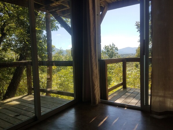 Ben arredato e arredato con gusto, il Grand View offre pace, tranquillità e panorami mozzafiato. Il portico avvolgente offre una vista mozzafiato sulla splendida Valle di Shenandoah, o se è troppo freddo fuori, si può godere la splendida vista da qualsiasi punto nel soggiorno - sala da pranzo - angolo cottura. In inverno, godetevi l'intimità di un camino elettrico mentre ammirate le grandi finestre pittoresche. Inoltre, si trova sul ponte inferiore è una stanza privata vasca idromassaggio, dove è possibile rilassarsi e rilassarsi dopo una giornata intera di escursioni o esplorare la zona circostante. Grand View può ospitare comodamente 6 persone con 3 camere da letto (1 letto king size, 2 letti queen size) e 1. 5 bagni (1/2 bagno in camera da letto con letto king size).