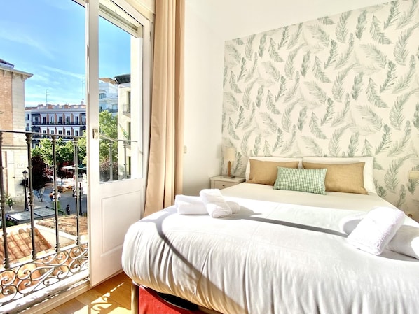 A very bright 2-bedroom apartment located in the best area of Madrid, the famous Calle Huertas, next to Plaza Santa Ana and Plaza del Ángel. It’s ideal for feeling like a true Madrilenian during your temporary stay in Madrid.