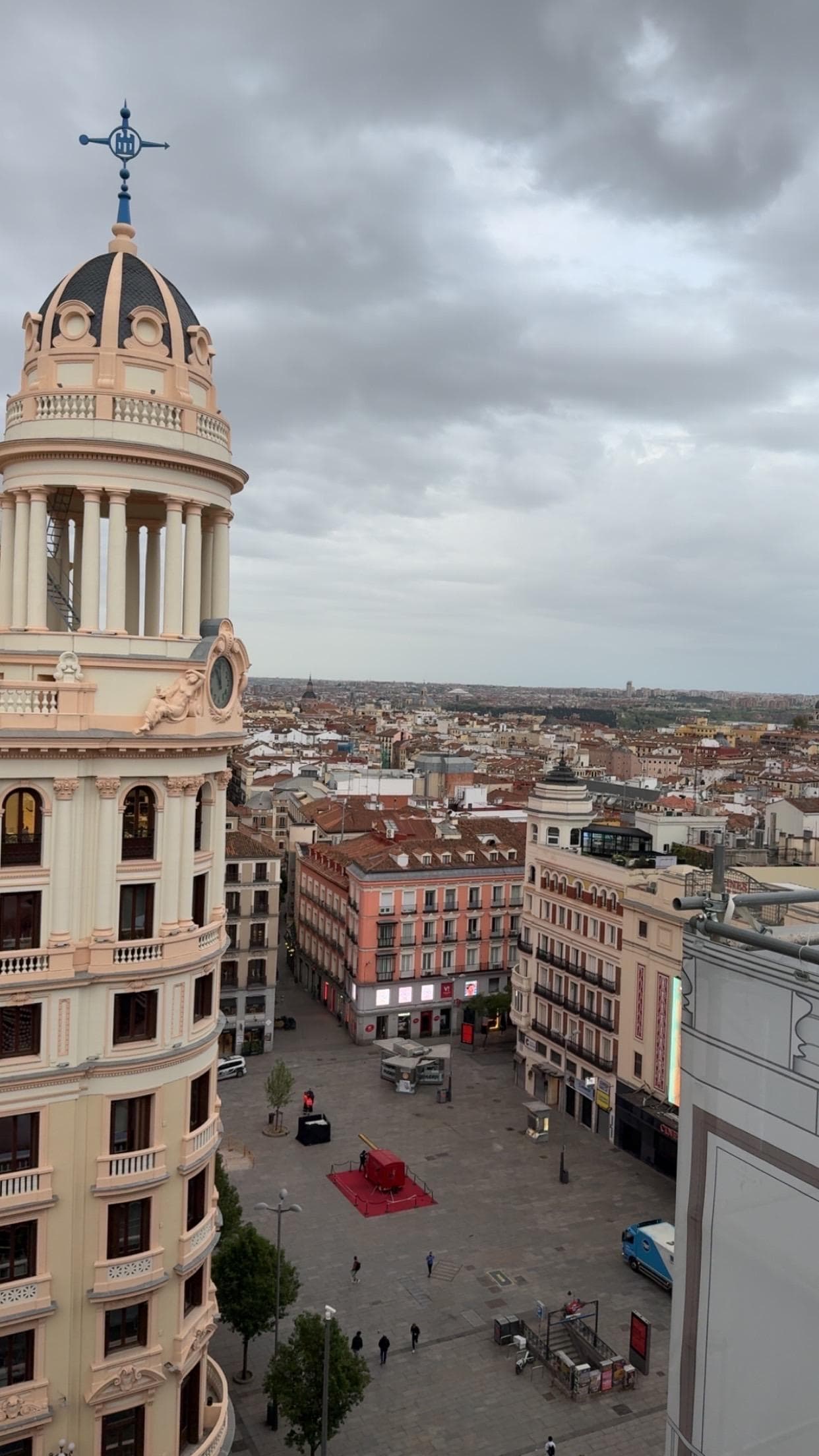 Avevamo un mini appartamento con vista sulla Gran Via, ma con gli infissi chiusi non sentivamo il traffico sottostante
