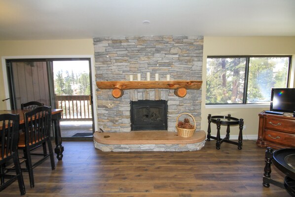 Unità Servizi: La cucina di dimensioni complete è completa di piano cottura, forno, forno a microonde, macchina caffè, frigorifero, lavastoviglie, piatti e materiali di cucina! Per quelle fredde notti invernali, ottenere accogliente accanto al camino propano!
