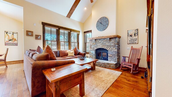 perfect getaway. Cozy up on the large sectional sofa and get warm by the wood