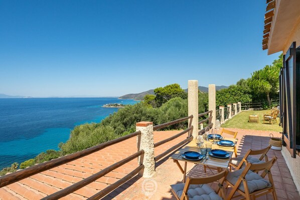 Dal giardino, potrete ammirare il mare smeraldo che si fonde con il cielo azzurro, creando un quadro indimenticabile.