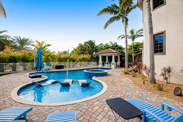 Questa splendida casa sul canale vanta una vista sull'acqua, un molo che può ospitare una barca di 25 piedi e due piscine private, una con un bar sull'acqua. L'arredamento elegante e la grande cucina non ti faranno mai desiderare di partire! L'area esterna di questa casa è grande e ideale per riunioni, con un'amaca, una firepit, una macchina per il ghiaccio molto grande per la pesca o la margarita e una TV all'aperto per prendere il gioco dalla piscina. C'è anche una stazione di pulizia del pesce situata sul molo!