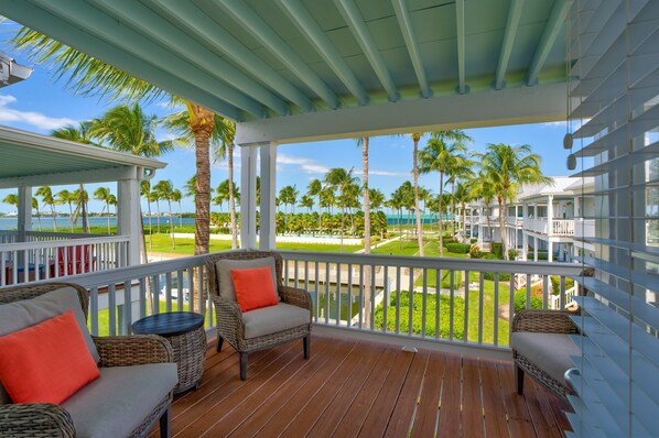 ● Exclusive HappyintheKeys benefit: access to off-site boat ramp and trailer parking ● Private 31' boat slip on community marina and Close to Villa ● Panoramic views of the Gulf of Mexico and marina canal ● Dockside fresh water connection and fish-cleaning station ● Covered patio with unobstructed water views — ideal for dining, lounging, and watching the sunset
