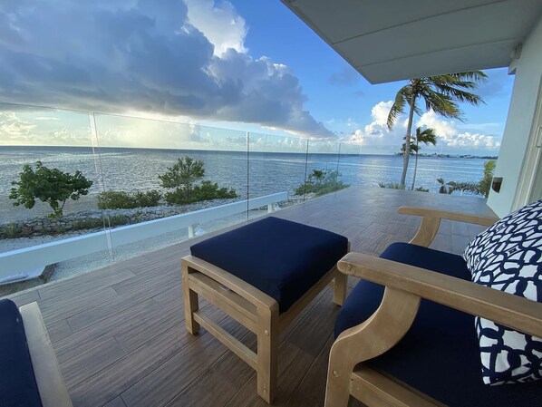 Relax on the second floor porch that wraps around the entire back and sides of the house with its unique glass railing, providing completely unobstructed views, or enjoy the ocean breeze under the shade of the large tiki hut in the backyard. High tide brings stunning views of the expansive Atlantic Ocean, while low tide transforms the landscape into a natural paradise where tropical birds walk around the exposed sandy flats.