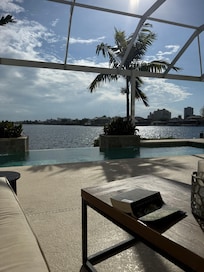 The views!!!! The interior of the home is wide open, spacious and beautifully appointed. Everything you need is provided. Three coffee makers are on site. A drip, a Keurig and I believe a French press. The pool area was perfect. Southern facing gives the pool sunshine all day. Lots of pool tools and floaties with the home. Plenty of beach towels on site to use. Washer and dryer are great. This is my dream home. We will be back. The only negative feedback I will give is in hopes to improve our next stay...hot water throughout the house takes a long time to come on. The upstairs master bedroom mattress is too soft and sagged to the middle. The southern facing bedrooms makes the bedrooms a little warm at night when sleeping even when keeping the shades pulled all day. Not sure how to fix that, that may be the price to pay for the sunshine on the pool all day long. The master bath shower fixtures need updated. Overall, this is a beautiful property and any negative I can overlook.