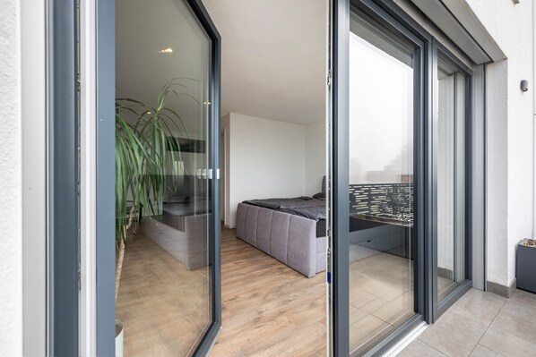 La camera da letto dispone di un comodo letto queen size e balcone. L’ampia zona giorno e pranzo open space è luminosa e dà direttamente sulla terrazza con mobili da giardino e barbecue – ideale per rilassarsi all’aperto. Per il tempo libero trovate TV e giochi da tavolo.