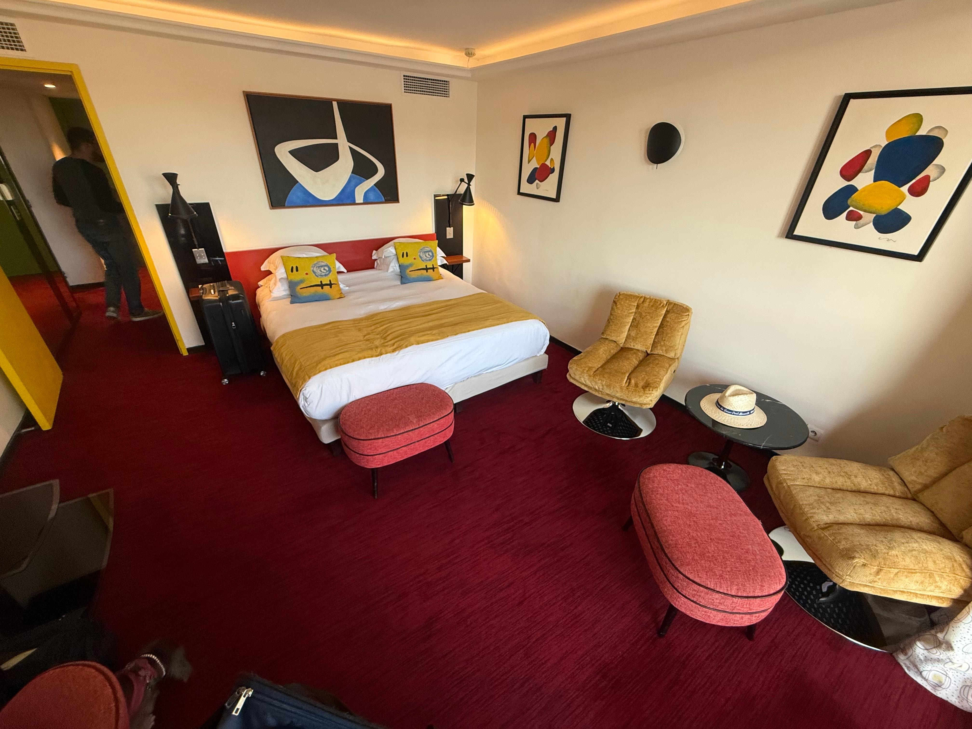 j'adore cet hôtel et j'y reviens régulièrement ,mais il faudrait faire quelques travaux de rénovation ; la ventilation fait trop de bruit et le mobilier (fauteuils )devraient être changé . et s'il vous plait enlevez ces faux Miro des murs . merci et aussi pour une chambre a plus de 250 euro la nuit ne soyez pas radin avec les capsules de café et les rosettes de lait . a bientôt quand mème