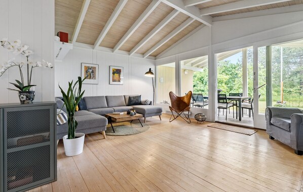 La vostra casa vacanze offre molti comfort moderni ed è situata in una posizione pittoresca sulla costa, a pochi metri dalla spiaggia. Iniziate la giornata ben riposati dopo una notte di sonno tranquillo e gustate una deliziosa colazione con tutta la famiglia. Forse il tempo farà da padrone e potrete gustare i vostri pasti all'aperto, sulla splendida terrazza coperta. La spaziosa cucina vi invita a cucinare con la vostra famiglia. La luminosa zona pranzo e l'accogliente soggiorno con le sue ampie finestre offrono una splendida vista sull'esterno. Rilassatevi sul divano o sulle comode poltrone la sera e concludete la giornata con un buon libro o un film. Oppure concedetevi una rilassante sessione di sauna.