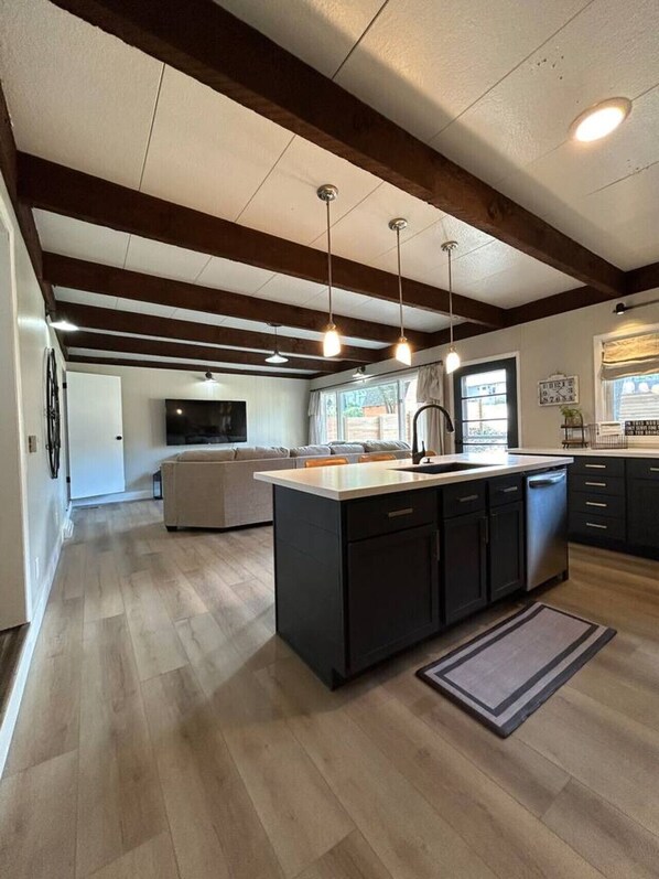 Have fun with the whole family at this stylish place just steps from campus. Our home was completely remodeled summer 2024. It has a newly landscaped, fenced yard, fire pit for outdoor fun, and plenty of space to spread out. We welcome your furry friends and have onsite parking and laundry along with a pool table for indoor fun. We know you will feel right at home with all new furnishings and all the things you would need for a getaway. Just pack your bags and we will take care of the rest.