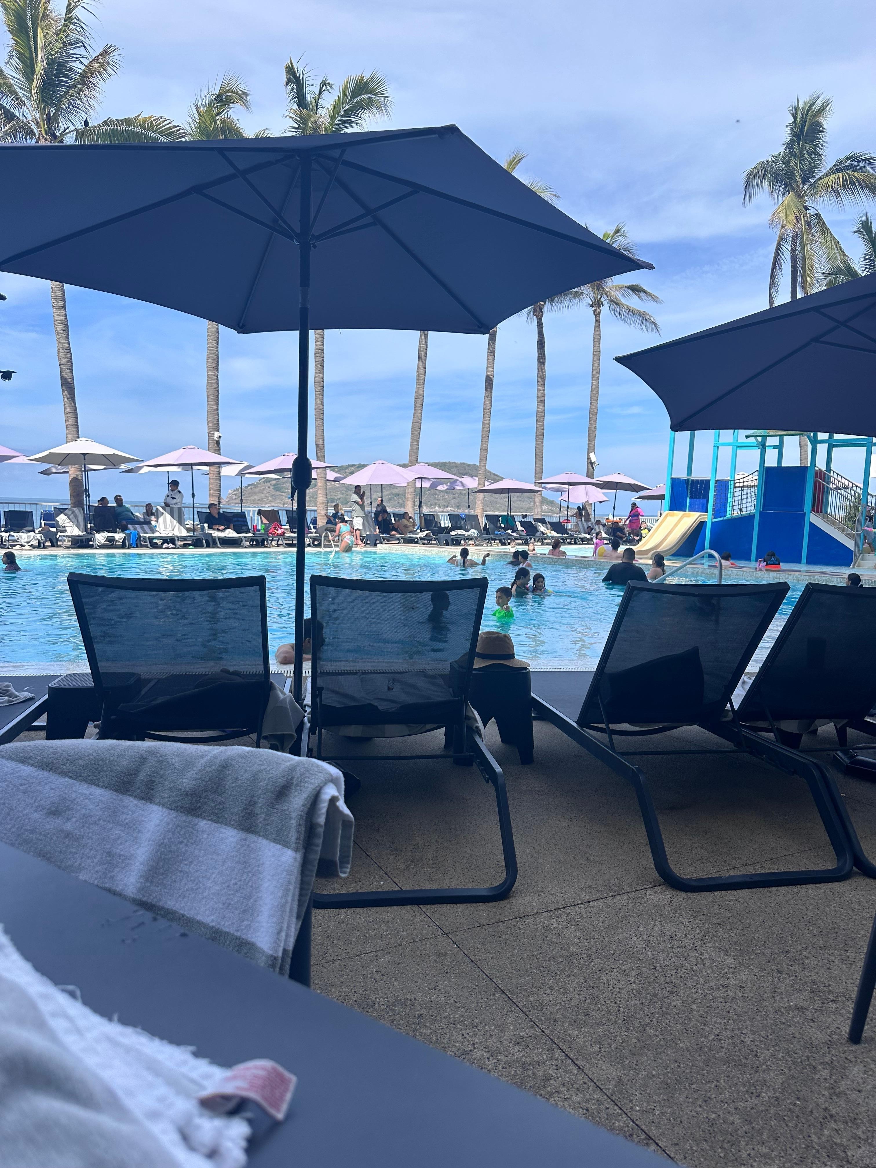 Paid for all inclusive, informed it was room only upon arrival. Spanish only communication, extremely limited English, never acknowledged by staff upon entry or exit of hotel, rooms cleaned on a crazy schedule, sometimes 930am, one day they showed up at 6pm. The pools are small, the lounging area at the adult pool (literally 4ft from the family pool) only has 10 chairs, the music is loud, the beach walking bands even louder, the organized tours that take over twice a week monopolize the pool areas, there is literally zero beach area, the couple of chairs you may find down there there are broken, I could go on.... But you get the point. Will never return to the property or Mazatlán in general, not worth half what we paid
