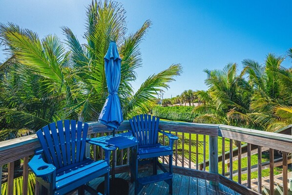 The "Seahorse Suite" is one of four 625 sqft one-bedroom apartments at Tranquility. The property is located on the east side of A1A, just a short walk through the grass and over our private wooden crossover to our secluded beach on the Atlantic Ocean.