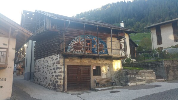 Balcone panoramico. Arredi in legno, travi a vista e parquet. Completa di tutti gli accessori e stoviglie. Frigo, forno a microonde e tv. 2 bagni, uno piccolo con doccia e l'altro anche con vasca e lavatrice. E' composta da una camera da letto matrimoniale e una cameretta con un letto a castello. Al piano rialzato, in soggiorno, c'è un divano letto per ospitare altre due persone all'occorrenza.. Ampio vano magazzino, portasci, scarponi, attrezzature varie e lavanderia. Molto silenzioso, ideale per chi voglia godere di pace e tranquillità. Si trova in un'antica piazzetta del paese, in un angolo molto suggestivo con antica fontana e lavatoio.