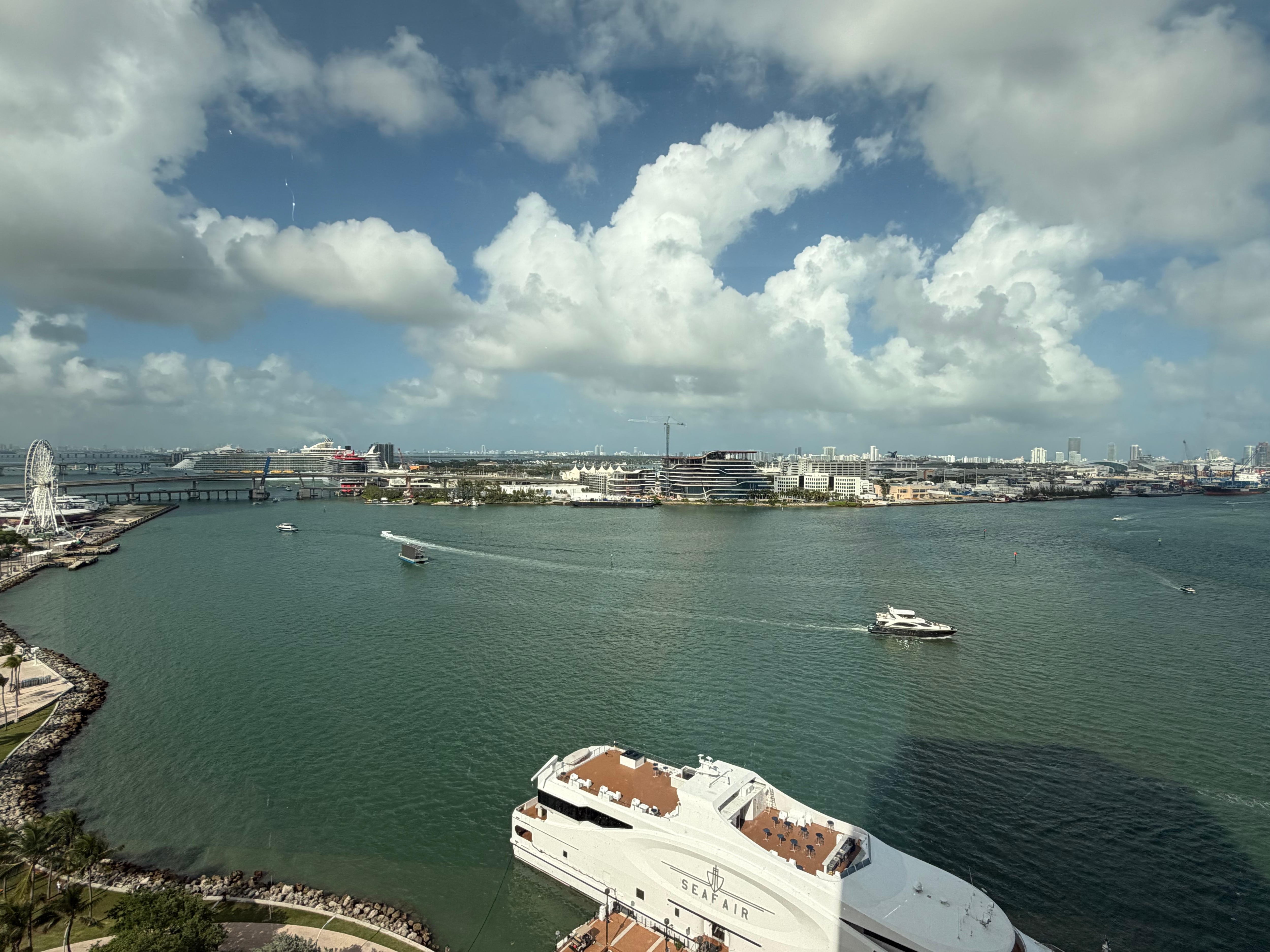 We had a wonderful view of the ocean from our hotel room. We actually watched a wedding on the yacht docked outside our window. It is within walking distance of many wonderful restaurants and many attractions. It is busy with a lot going on, but it’s Miami, so that is to be expected. The room was quiet, very clean, and the staff was very friendly. Highly recommend!