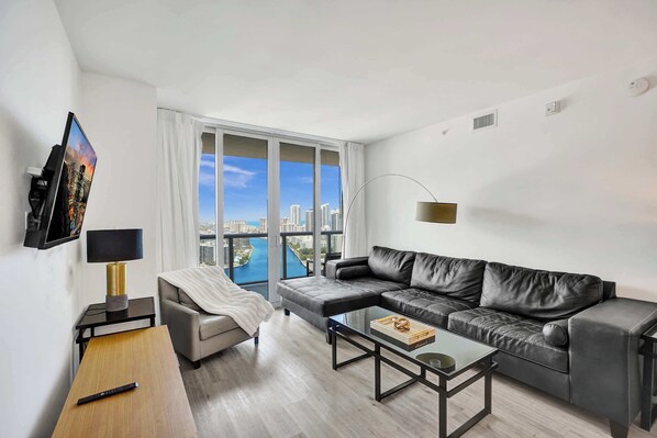 Find your perfect getaway at Beachwalk Resort Hallandale Beach, where sleek modern design meets the radiant charm of South Florida’s coastline. Located along the peaceful Intracoastal Waterway, our striking 33-story tower offers a tranquil escape just moments from Hallandale Beach’s stunning shores. Our spacious 1-bedroom apartment is thoughtfully designed for comfort and style, making it the ideal base for your unforgettable vacation experience.