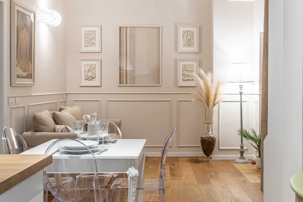 We barely even stayed in the room due to the mould as we were concerned for our health and the last thing we’d do is eat on that table. The pictures are falsely advertised and probably photoshopped to not show all the flaws. The area is nice with plenty to do. Check out the cannoli shop, the crepe/ice cream shop and Farini. They were all great. It does get a bit loud and the apartment vibrates when the trams pass but that’s the least of the worries. I would never recommend a stay here!