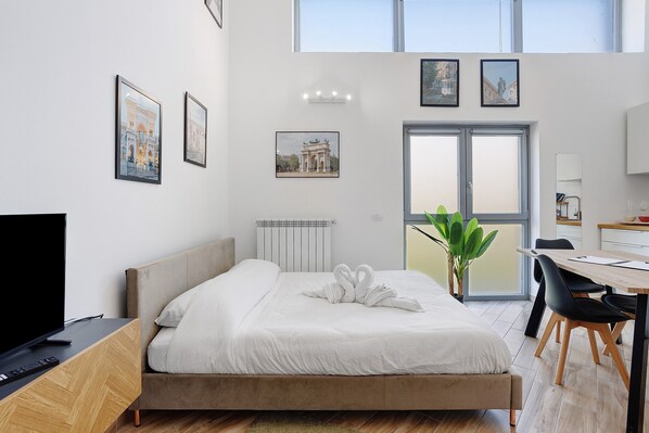 Appartamento di design da 60 mq nel vivace quartiere Navigli di Milano, pensato per coppie e professionisti in viaggio d'affari. Arredamento contemporaneo, luce naturale e finiture di qualità creano un ambiente raffinato, ideale per il relax o per lavorare da remoto.