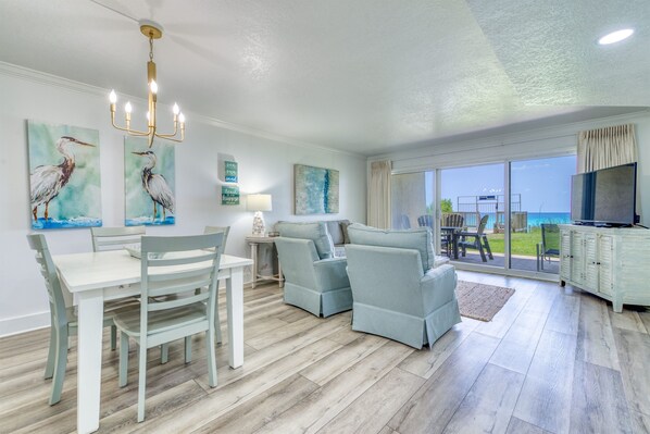 Enter condo B105 at Beach House Condominiums to an open, airy beachy welcome! This property is located directly on the beach with no streets to cross. It is a beautiful one bedroom, one bathroom condo sits on the ground floor and it is centrally located near the pool deck, gazebo, tennis courts, and grill area. Stepping outside onto the covered walk out patio, you are met with a gorgeous view of the Gulf of Mexico and the white sandy beaches of the Emerald Coast! You can hear the waves crashing and almost feel the surf splash right from the walk out patio!