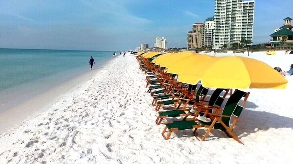 - Spectacular Emerald Coast Beach with dining, watersports, chair/umbrella set up, lifeguards, sundries and restroom facilities.
