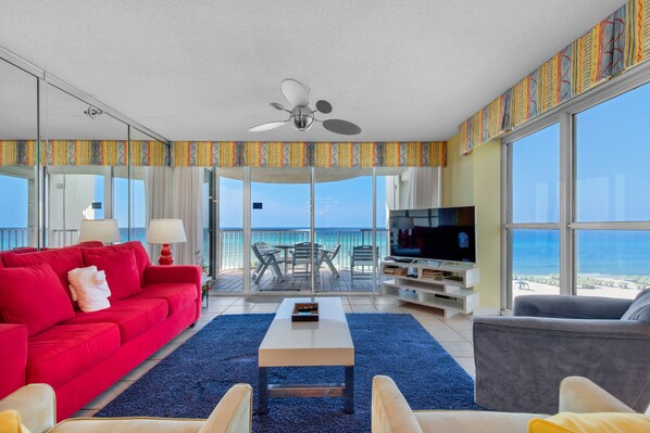Hidden Dunes Gulfside 406 è un paradiso tropicale dentro e fuori! La vista sul golfo dal patio privato, la zona giorno e la camera da letto principale sono spettacolari e gli arredi hanno un'atmosfera tropicale! La zona giorno è circondata da splendide viste e ha una grande TV a schermo piatto per il tuo divertimento visivo. Il divano ha anche un letto matrimoniale per quegli ospiti extra. La sala da pranzo può ospitare comodamente sei persone con posti a sedere extra al bar per la colazione. La cucina è stata aggiornata con ripiani in granito, nuovi armadi ed elettrodomestici, forniti di tutto il necessario per i pasti in famiglia. La camera da letto principale è arredata con i colori freddi dell'acqua e ha il suo ingresso privato sul patio! La camera degli ospiti della regina ha anche ispirazioni tropicali con il proprio bagno privato di collegamento. I bambini adoreranno la camera doppia per gli ospiti con colori vivaci e un bagno privato! Hidden Dunes 406 è un paradiso privato sul Golfo per il divertimento della tua famiglia per tutte le tue prossime vacanze!