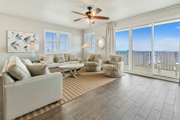 Goditi le viste spettacolari sul Golfo dal 16 ° piano, balcone angolare di Ariel Dunes II 1601! Questo condominio è stato completamente rinnovato, tra cui una cucina all'avanguardia che vanta mobili personalizzati, ripiani in granito aggiornato, un lavandino fattoria e apparecchi top-of-the-line. Ci sono NUOVE pavimentazioni in piastrelle con effetto legno e NUOVI bagni con contatori in granito e vanità moderne. La master suite king dispone di vista sul golfo con accesso al balcone e di un bagno privato con doccia separata, vasca da bagno e doppio lavabo. C'è una camera per gli ospiti con un letto matrimoniale, un'altra camera per gli ospiti con 2 letti singoli e un divano letto nel soggiorno, che può ospitare comodamente fino a 8 persone. Regalati una vacanza al mare di lusso all'Ariel Dunes II 1601!