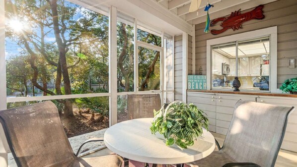 Close walk to the private beach. Many options for some great seafood in the area. Love it!