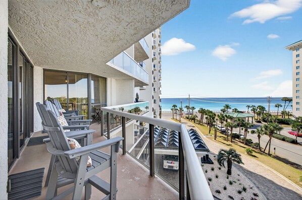 Tutte le camere, eccetto il 3 ° blocco della camera da letto, si aprono su un 28 FOOT BALCONY. La TERZA CAMERA DA LETTO si apre sul privato 14 PIATTO BALCONE. Le coperture per i balconi sono dotate di vetro trasparente per la VISIONE SEMPLICE. Blocco TERZA CAMERA (HOTEL UNIT) 2 letti queen size.