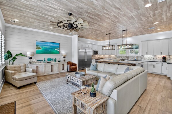 - Spacious Living Room with lounge seating and 75" 4K Smart TV