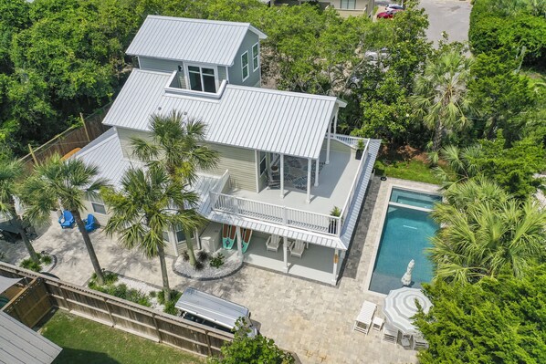 Welcome to Longboard Oasis! This spacious and remodeled home has a brand new private pool + hot tub and comes fully stocked with beach gear, boards, games, and a 6 - Seater Golf Cart. This home is located steps away from a deeded beach access and offers easy access to all the dining and attractions of Miramar Beach and Destin.