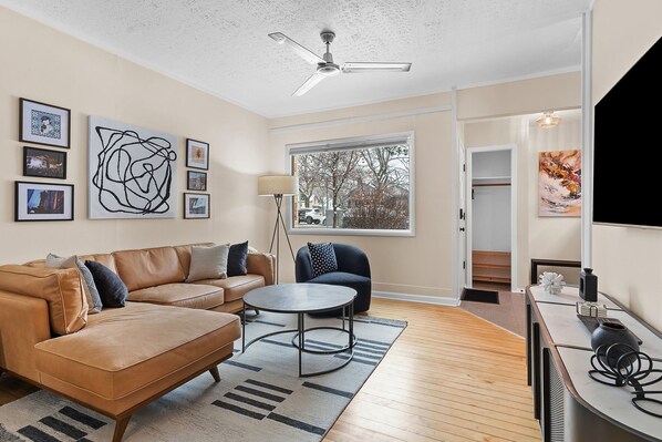 This spacious 3-bedroom, 1.5-bath home offers a unique blend of contemporary style and musical inspiration. With two levels of beautifully appointed living space, you'll find everything you need for a relaxing and memorable stay.