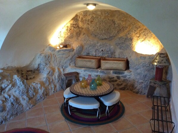 La casa di pietra di Lilian è una parte della montagna. La roccia viva entra nella casa. La natura abbraccia questo bellissimo edificio mentre la casa ha il potere di domare la natura.